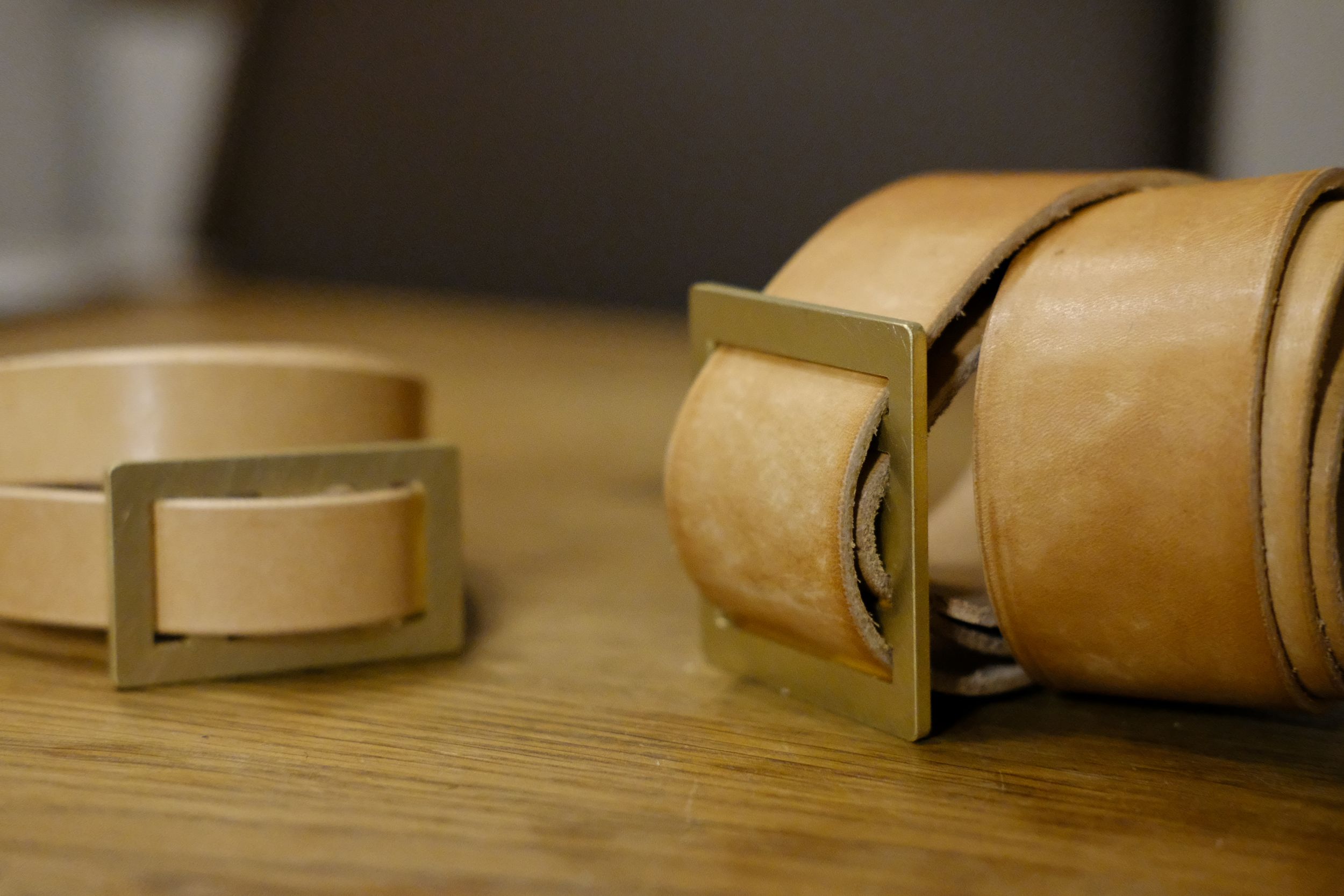 Die Messingschnalle kann zudem mit anderen Rohgürteln oder Riemen kombiniert werden und verleiht diesen einen klaren symbolistischen Look.