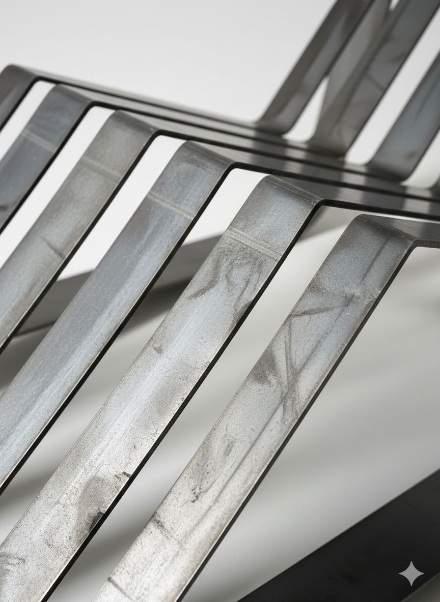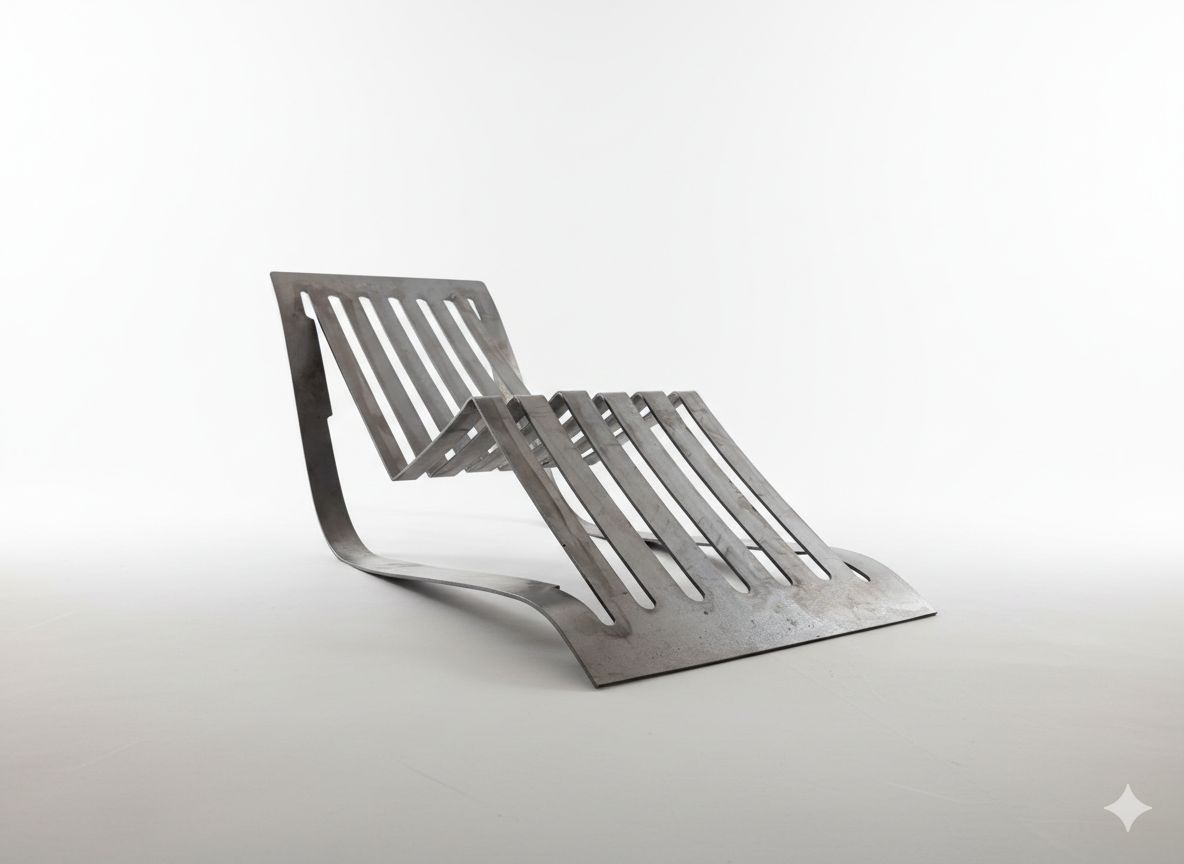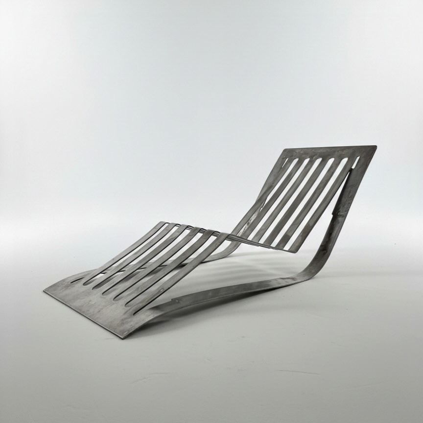 Maxi ist ein Spiel mit dem Material. Durch die Biegungen in der Sitzfläche zwingt sich das Meterial der Kufen in die organische Form.