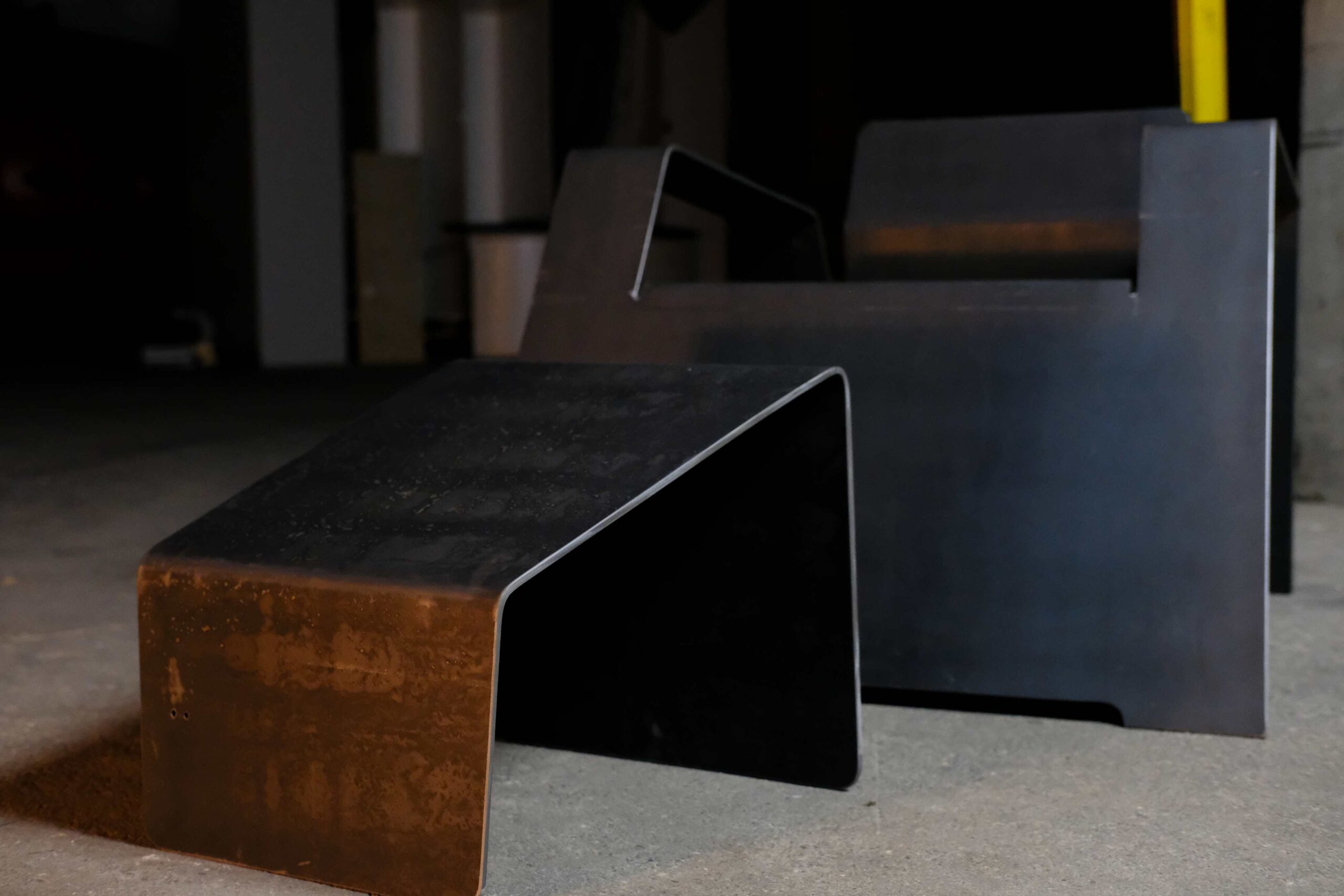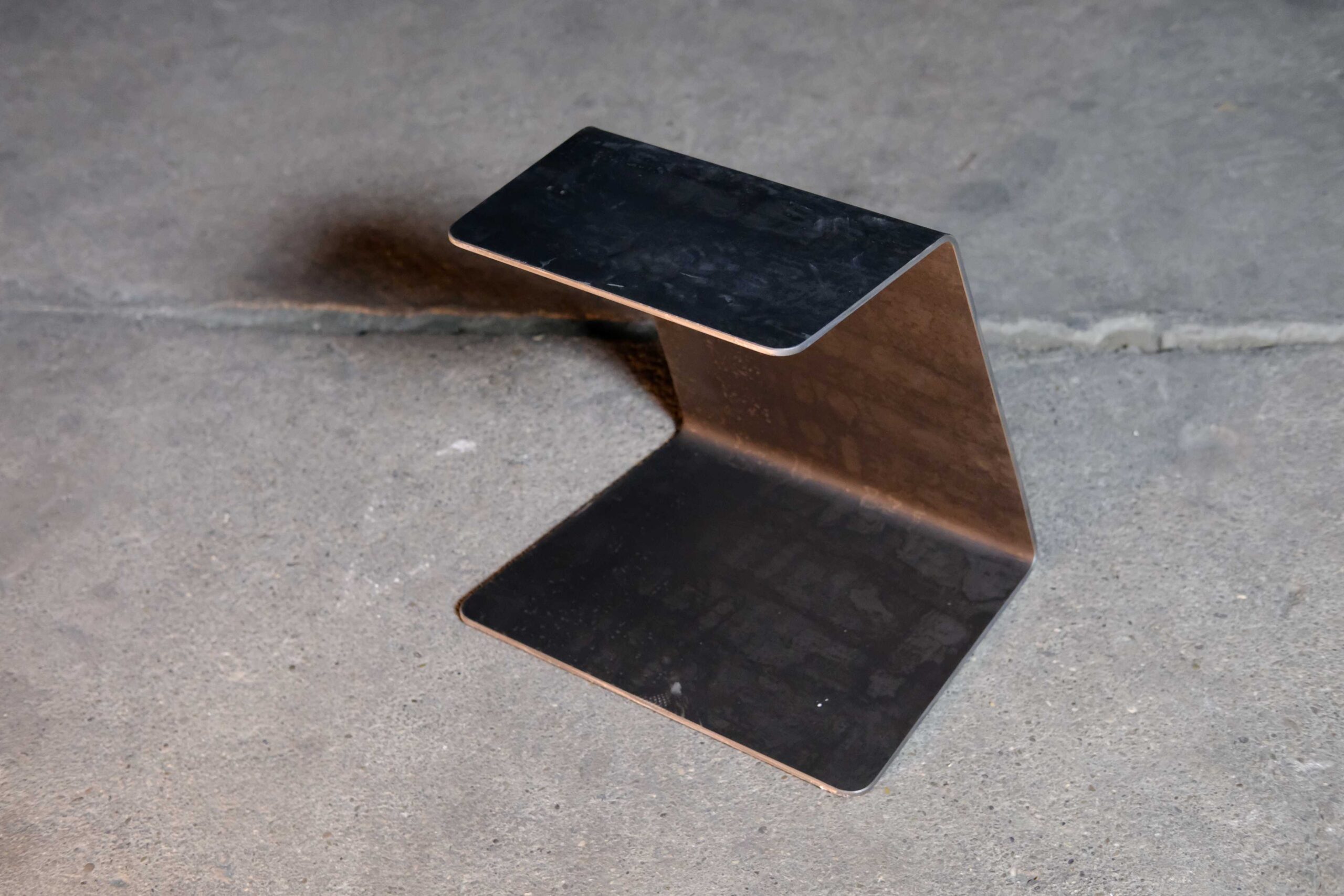 Präzision aus der Münchner Manufaktur. Wie alle unsere Objekte wird auch „Otto“ ohne Verschnitt aus einer einzigen Platte gefertigt. Die klare Linienführung und die rohe, versiegelte Metalloberfläche machen ihn zum idealen Begleiter für Sichtbeton-Architektur und moderne Lofts.