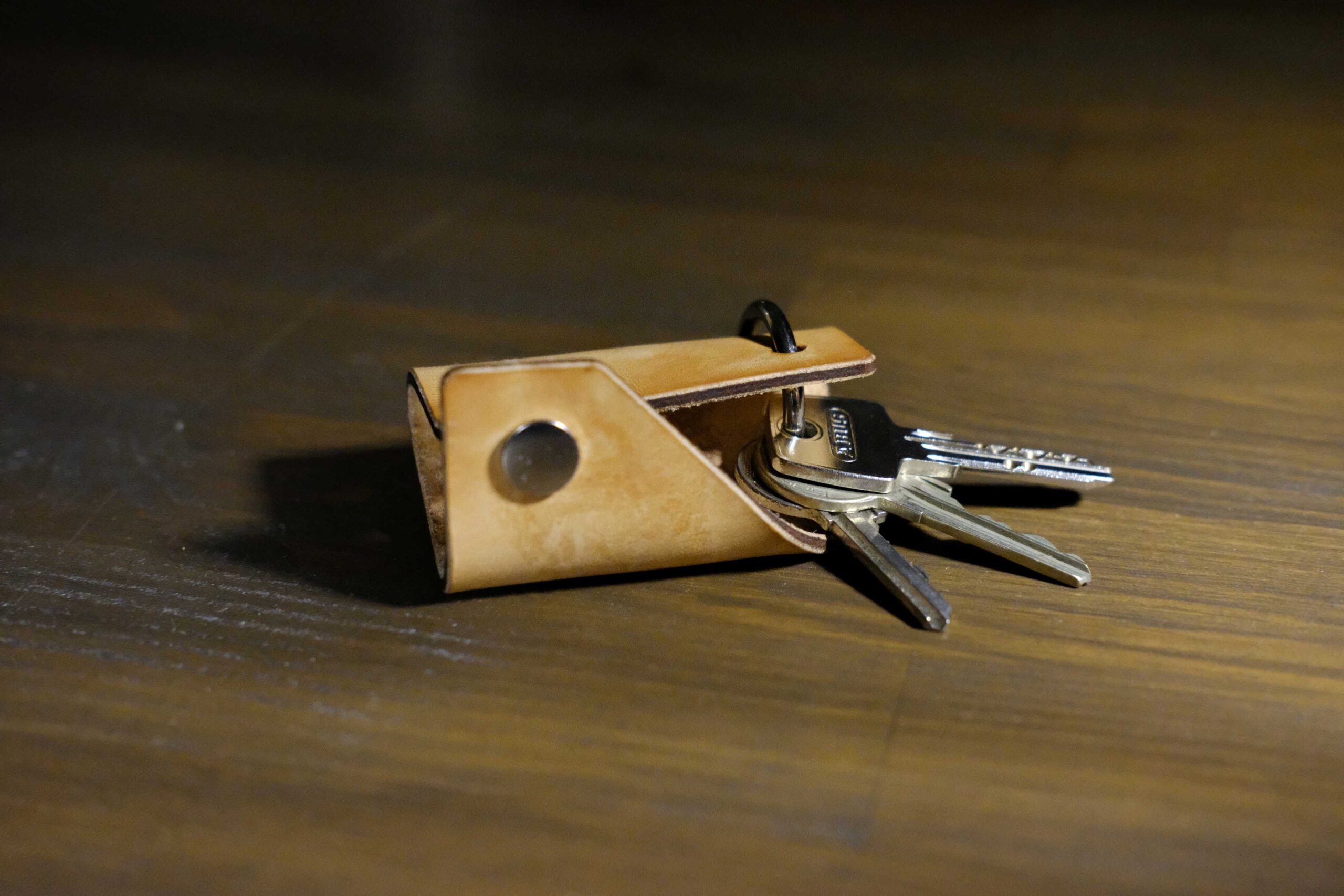 Sepp ist aus einem gelasertem Stück vegetatil Gegerbten Rindsleder. Er besitzt über einen Druckknopf und einen Rund-Karabiner und behält so deine Schlüssel um Griff.